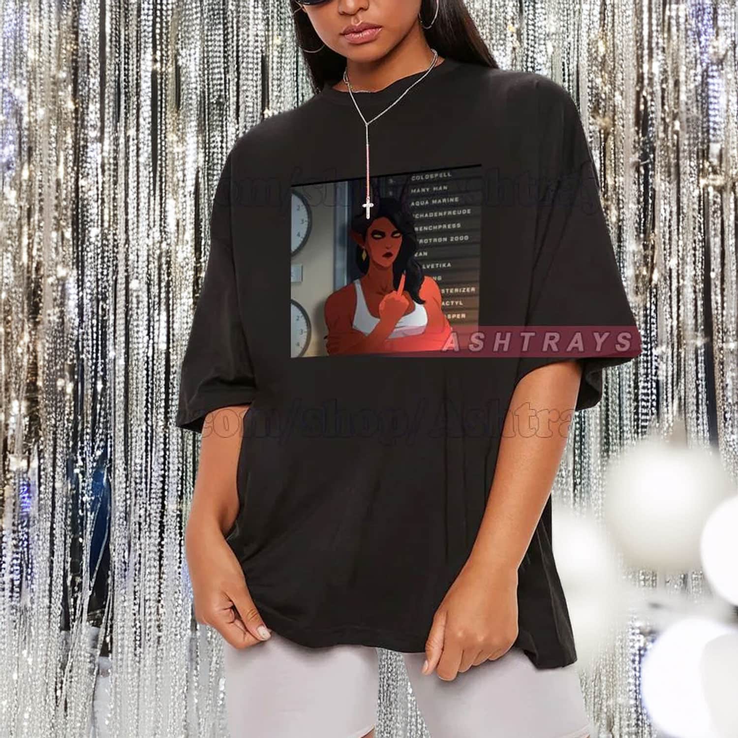 The Malevola Middle Finger T-Shirt – Retro Malevola Shirt isn’t just a graphic tee — it’s a loud, rebellious tribute to Dispatch’s most unapologetic villain.