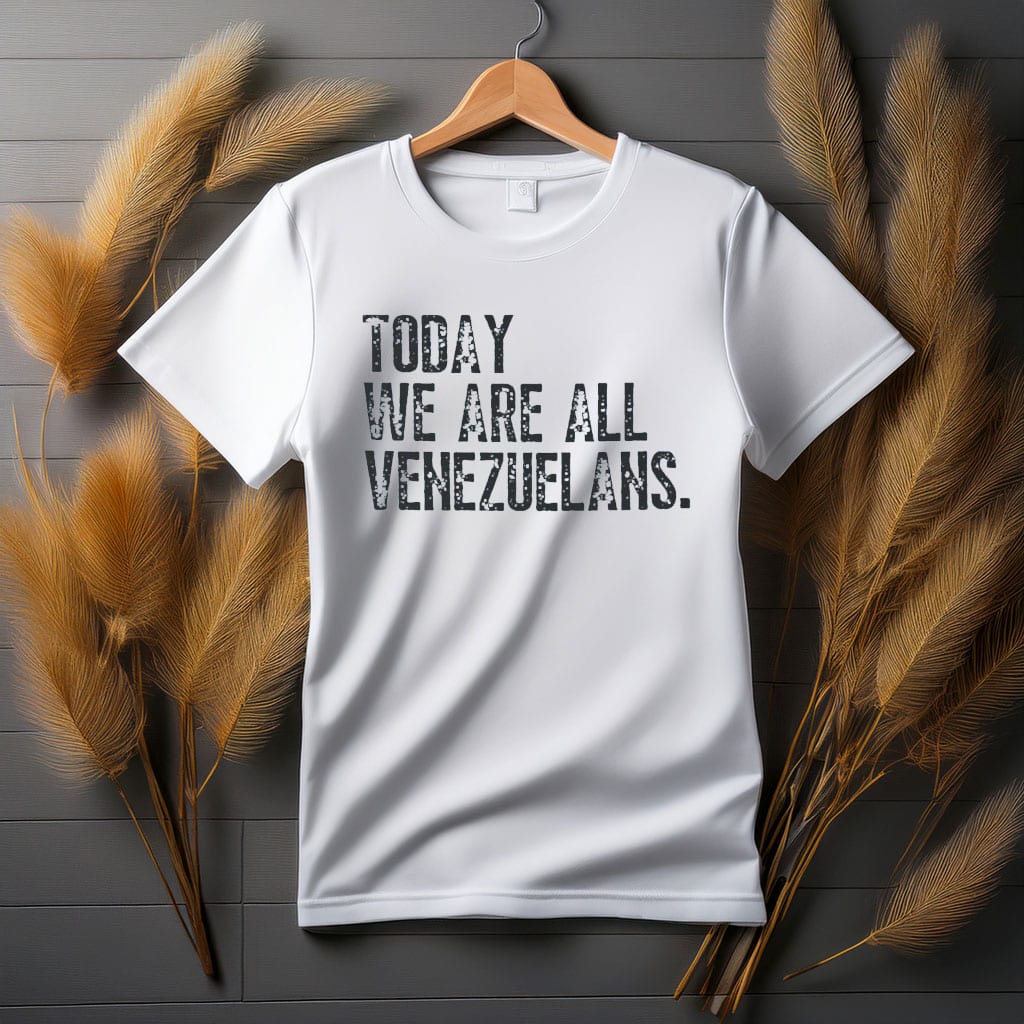 Featuring bold “Support Venezuelans” graphics, this tee symbolizes compassion, resilience, and the ongoing pursuit of justice and freedom. The high-quality print stays crisp and vibrant wash after wash, ensuring long-lasting durability and standout appeal. Lightweight yet sturdy, it balances comfort with a confident statement.